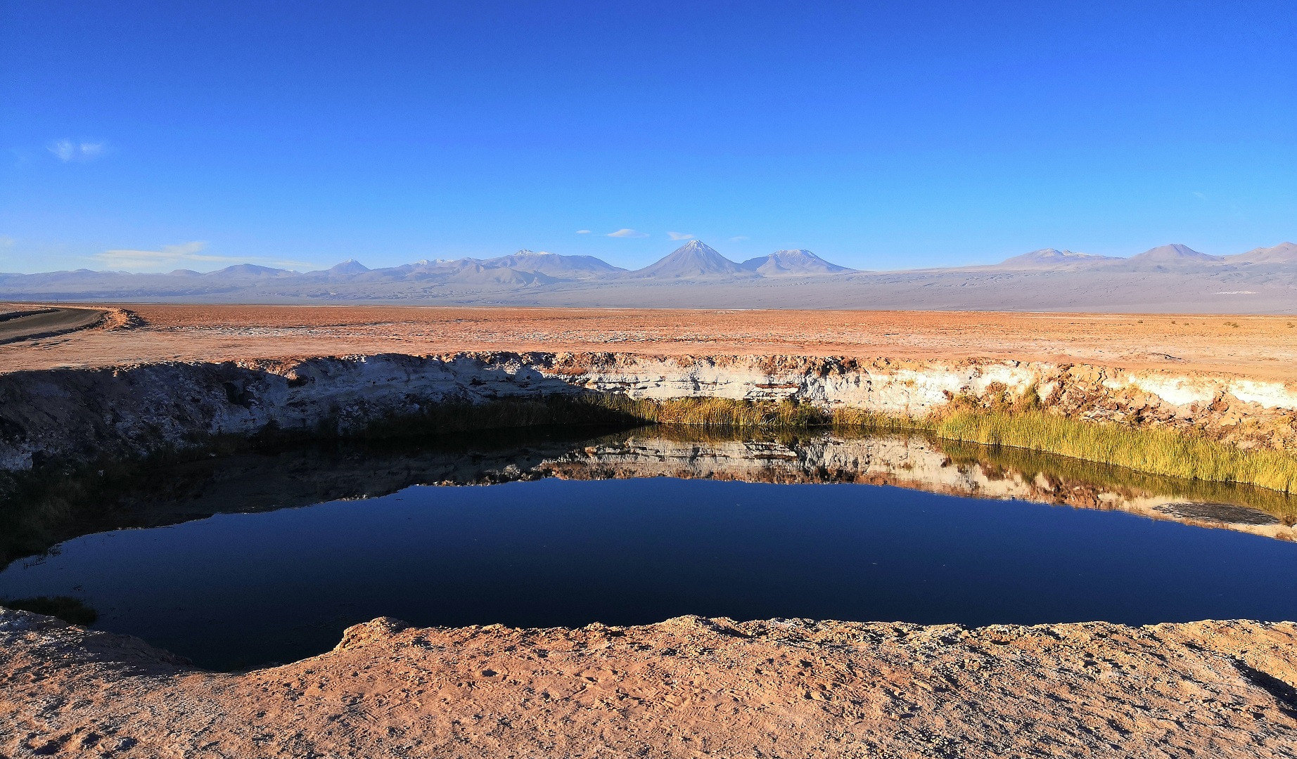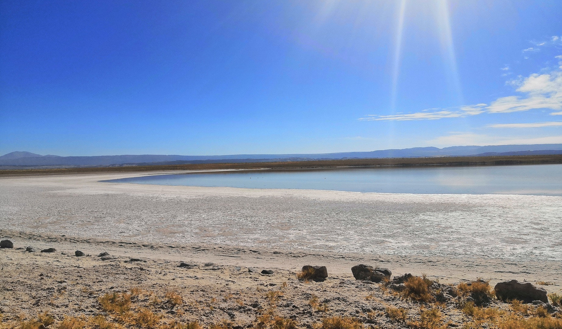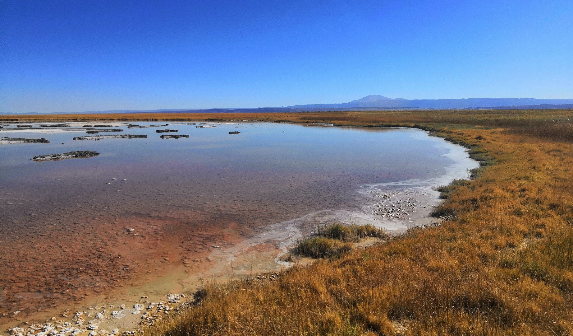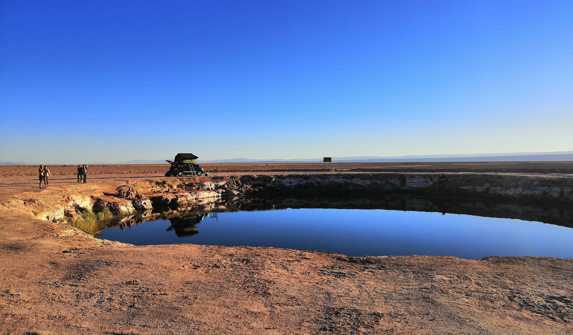 Мертвое море в Чили — находится на юг от Сан-Педро де Атакама. Концентрация соли в воде – 28%! На машине ехать минут 20 по грунтовой дороге. Вход 15000 песо — самый дорогой билет из всех достопримечательностей в округе.