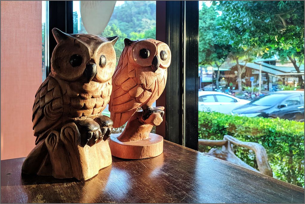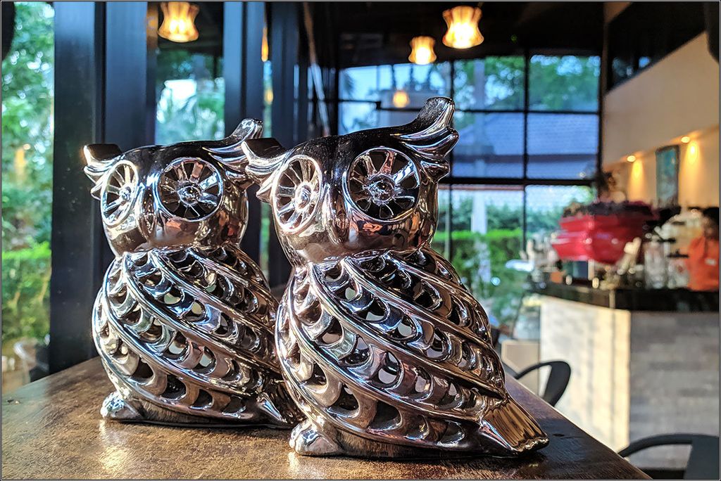 Я вообще не гурман.Нет во мне тонкой гастрономической жилки, и к пище я отношусь почти сугубо утилитарно. Нет, конечно, мне нравится питаться вкусно, но такого, чтобы прямо вот наслаждаться вкусом хорошего вина или санкционного сыра — этого во мне нет. Я даже разницу между хорошим сваренным кофе и растворимой бурдой не очень чую, а даже если чую — меня эта разница не напрягает. К фруктам отношусь равнодушно, к сладкому не рвусь, устриц и омаров могу съесть, но удовольствия получу не больше, чем от каких-нибудь банальных котлет.Поэтому по ресторанам и кафе я хожу, скорее, с точки зрения визуального интереса, где интерьер поприкольнее, где кресла помягче, музыка не орет в ухо и посидеть приятно.Вот, еще одно кафе на Нопарраттаре-бич, мы его называем «кафе с совами».Насколько там качественно кормят, сами понимаете, я вам точно не скажу. А вот совы там — забавные ;)