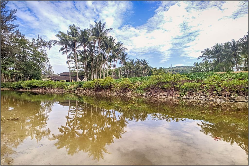 В маленькой речке отражается зеленая зона отеля Dusit Thani — в прошлые годы я его уже фотографировал более-менее подробно.
