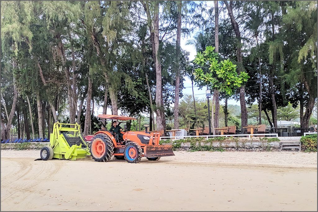 На большом пляже Клонг Муанг убирают мусор — специальную технику пригнали, раньше я тут такого не видел.