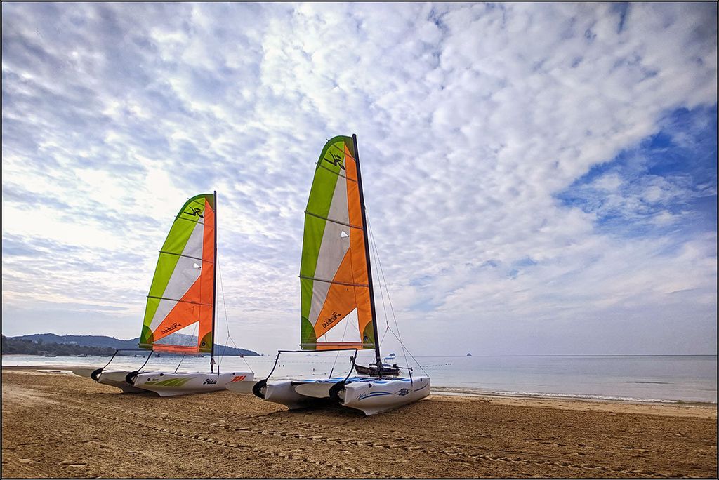 На пляже сохнут прогулочные катамараны — еще все спят, для них еще не время.