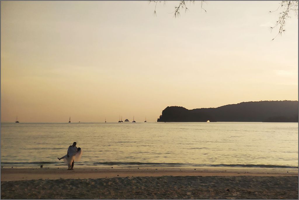 Вчера вечером выбрался посмотреть на закат. На этот раз на пляж Нопарраттара, для разнообразия — мне там как-то обычно везло на красивые закаты.Ну и хожу, чего-то там фоткаю, вдруг смотрю — тайская свадьба. Молодожены, фотограф и ассистентка фотографа — ходят по берегу туда-сюда, фотограф командует, молодожены строятся, все как положено.А я ж фотограф, больше четырех сотен свадеб в Москве отснял с 2004 года. Подошел, попросил разрешения, сделал снимок на память.