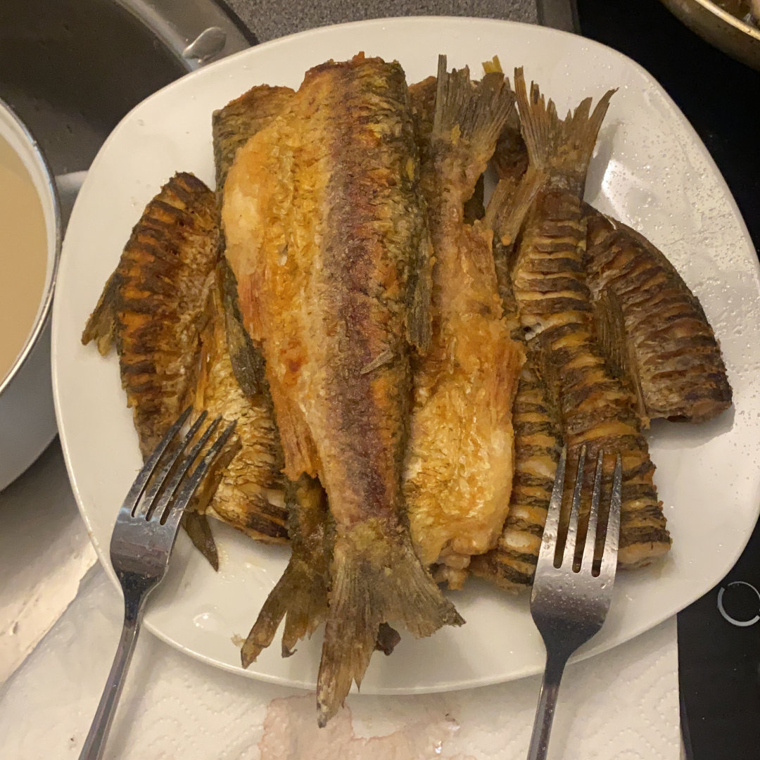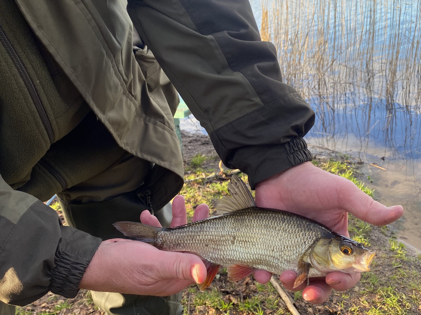 Муж мой перед поездкой вооружился основательно, включая мотыля и опарышей двух цветов. Стоял какой то неправильный сезон по нересту и ловить «серьезную» рыбу типа щуки было запрещено. Поэтому мы законопослушно ловили на поплавок все, чем было богато озеро: язей, плотвичек, красноперок и окуней. Ловилось в озере всегда. С учетом того, что от домика до берега было 100 метров, ловить муж ходил несколько раз в день, как только к нему прилетала рыбацкая муза. И всегда приходил с рыбами «на пожарить». В итоге рыбу мы жарили и ели каждый божий день. Кормили кота, угощали друзей. Избытки отпускали. И наутро ловили их заново.